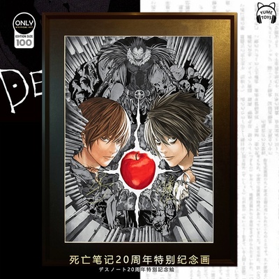 Картина выпущена в честь 20летия аниме "Тетрадь смерти". Актеры озвучки Ягами Лайта и Эла расписались на ней.