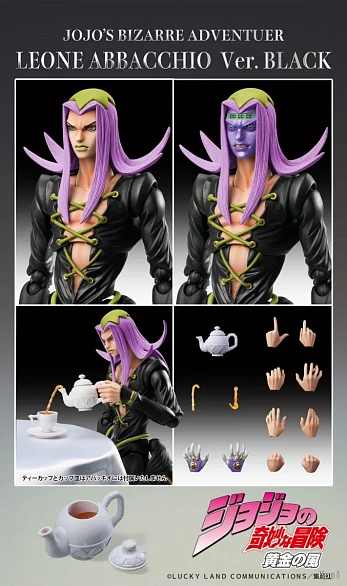 Комплектация: фигурка + 2 лица (лицо персонажа и лицо стенда) + 5 пар рук (4 пары персонажа и 1 пара стенда) + чайник + 2 эффекта для чайника