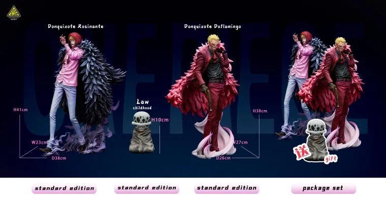 | Параметр/Название | Doflamingo Donquixote, Rosinante Donquixote и Trafalgar D. Water Law от Super Bomb Studio | Trafalgar D. Water Law от Super Bomb Studio | Rosinante Donquixote от Super Bomb Studio | Doflamingo Donquixote от Super Bomb Studio |