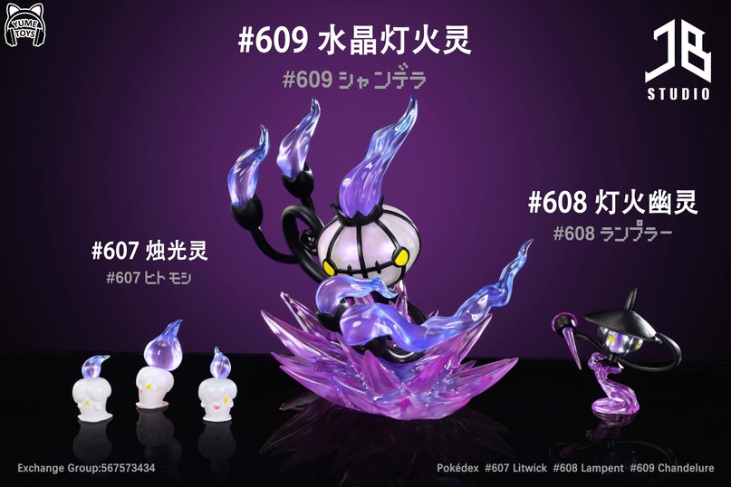 Фигурки Litwick & Lampent & Chandelure - Pokemon от JB Studio