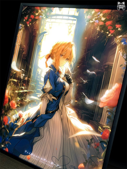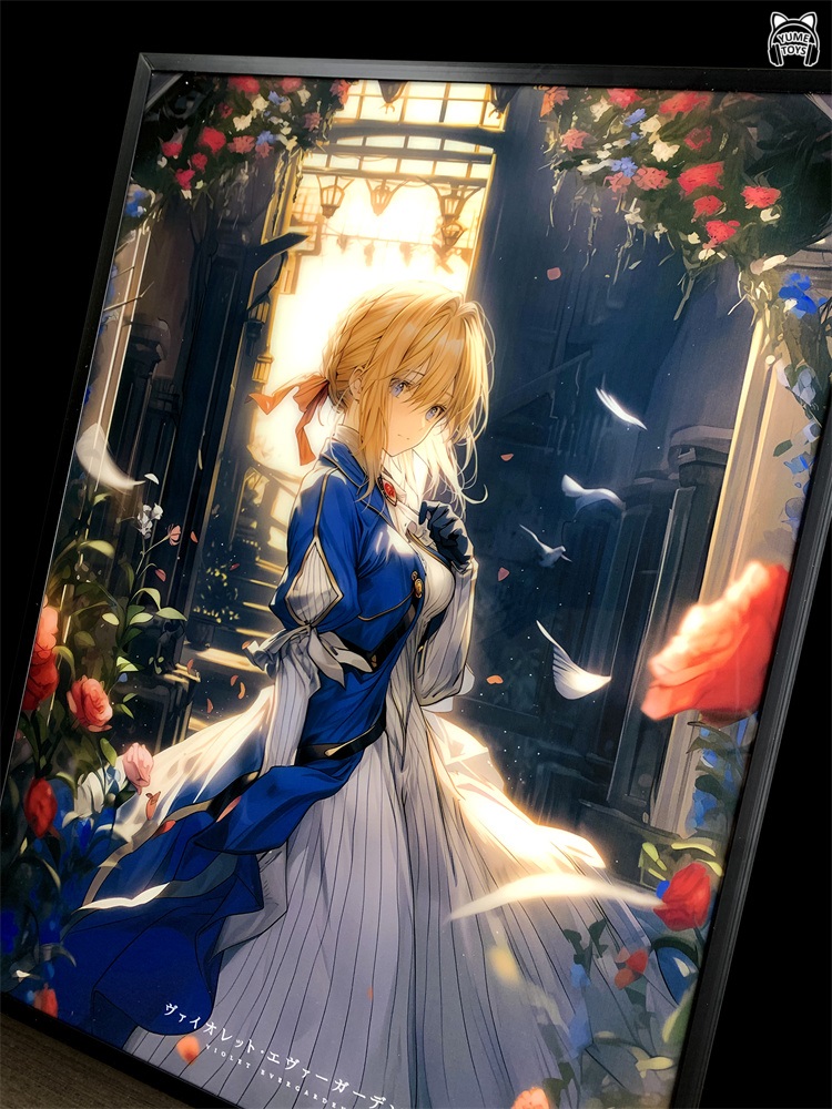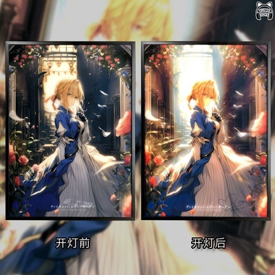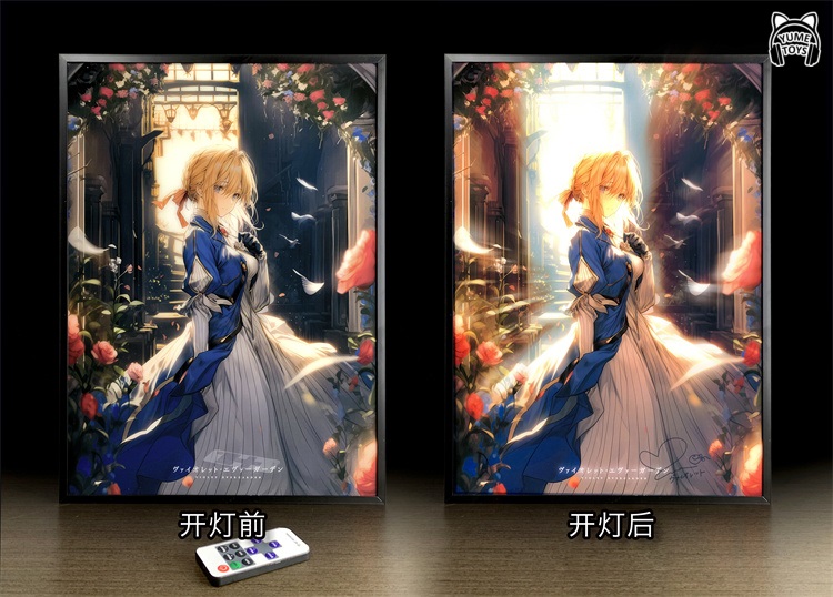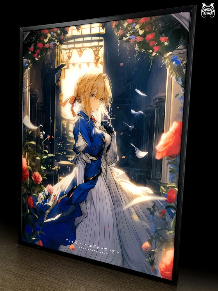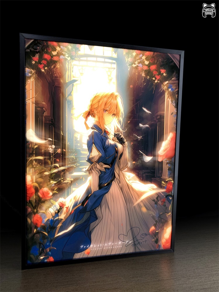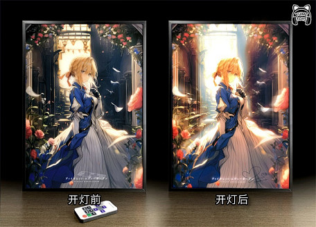 Картина с подсветкой, после включения света фон усиливается, а в правом нижнем углу появляется реплика актера озвучивания Вайолет.