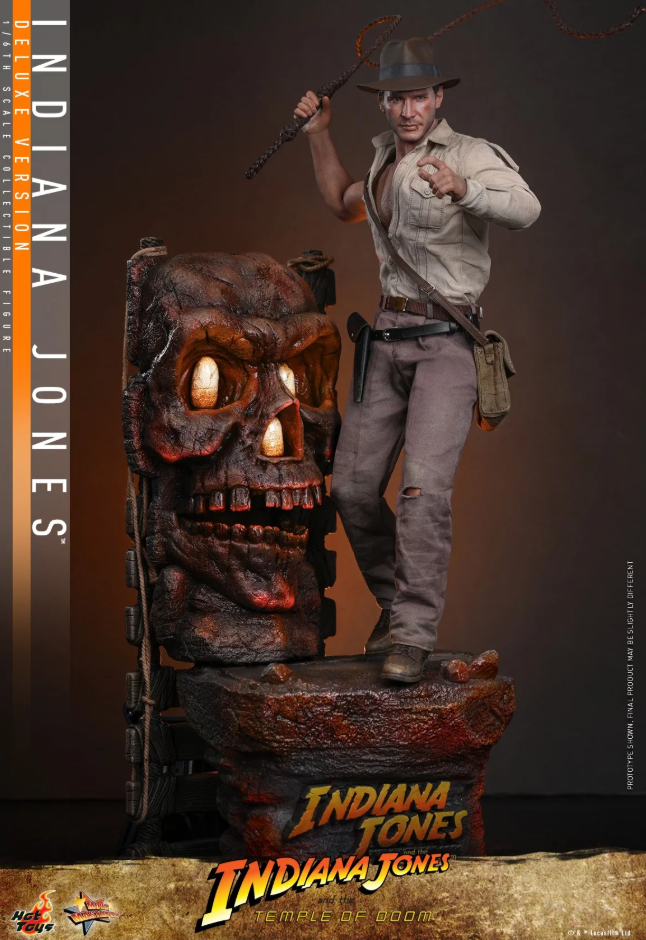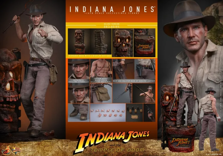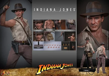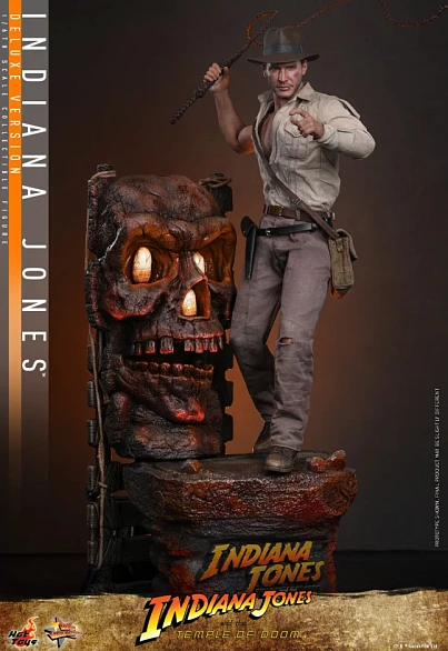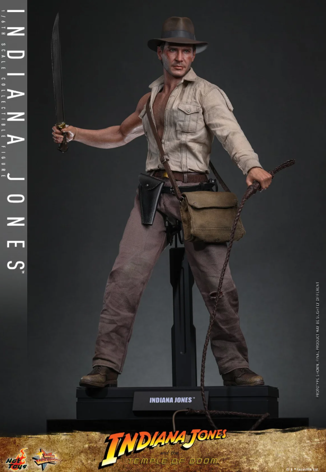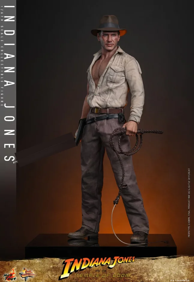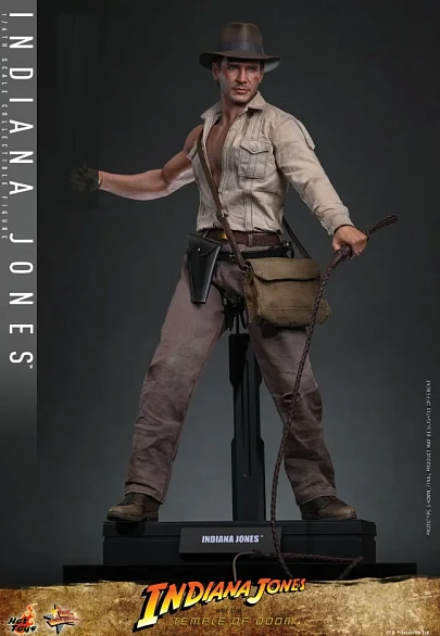 Комплектация: фигурка + пять сменных левых рук + семь сменных бинтов обмотанных вокруг правой руки + бежевая рубашка с одним рукавом состаренная и потертая + пара коричневых брюк с эффектом потертости и износа + пояс коричневого цвета + черный кожаный пояс + коричневый сапог + красный шнур + кнут из натуральной кожи (с гибкой проволокой) + копье + мачете + револьвер + сумка через плечо + санскритский манускрипт + два набора камней Санкара (в неактивном и активированном состояниях) + подставка для фигурки с логотипом фильма и именем персонажа