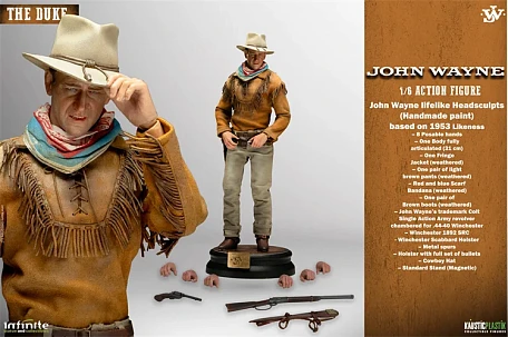 Комплектация: фигурка + + 3 пары рук + куртка ковбоя + брюки + ботинки + бандана  + шляпа + кобура + 3 оружия+ подставка магнитная