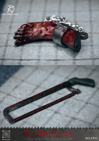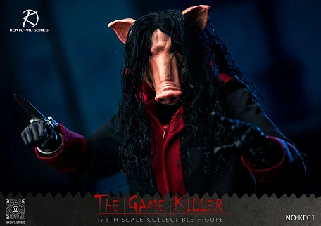 Комплектация: фигурка Джона + фигурка куклы + сменная голова свиньи + 3 пары сменных рук Джона + одежда Джона ( плащ + брюки + обувь + футболка ) + одежда куклы ( брюки + рубашка + галстук + жилет + пиджак + обувь ) + велосипед + сломанная нога + замок + цепь + пила + магнитофон + скрытый нож + подставка