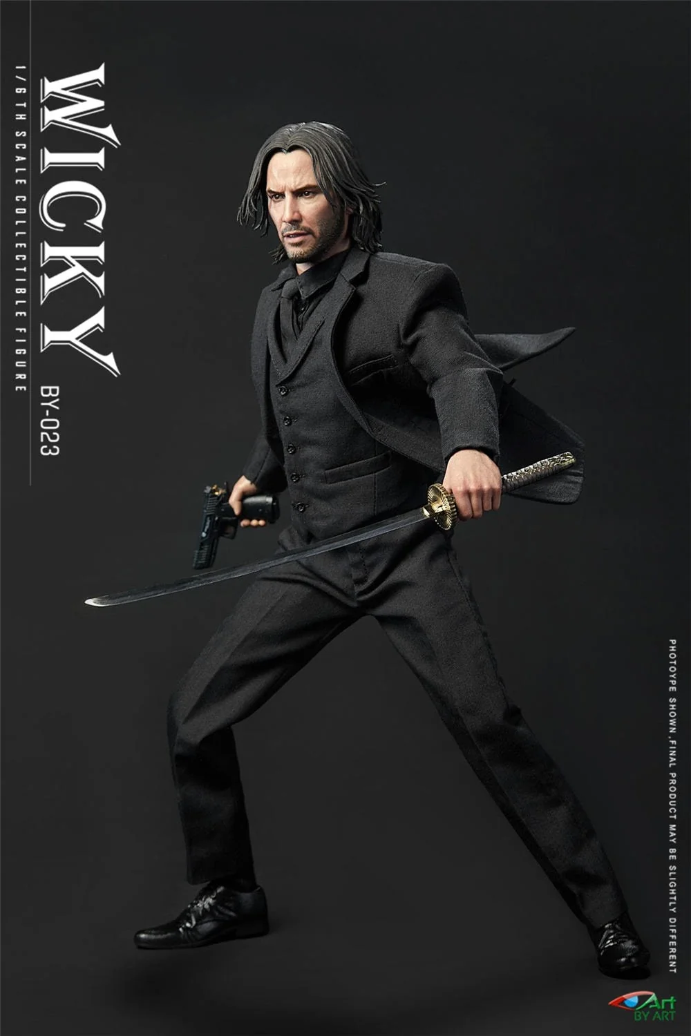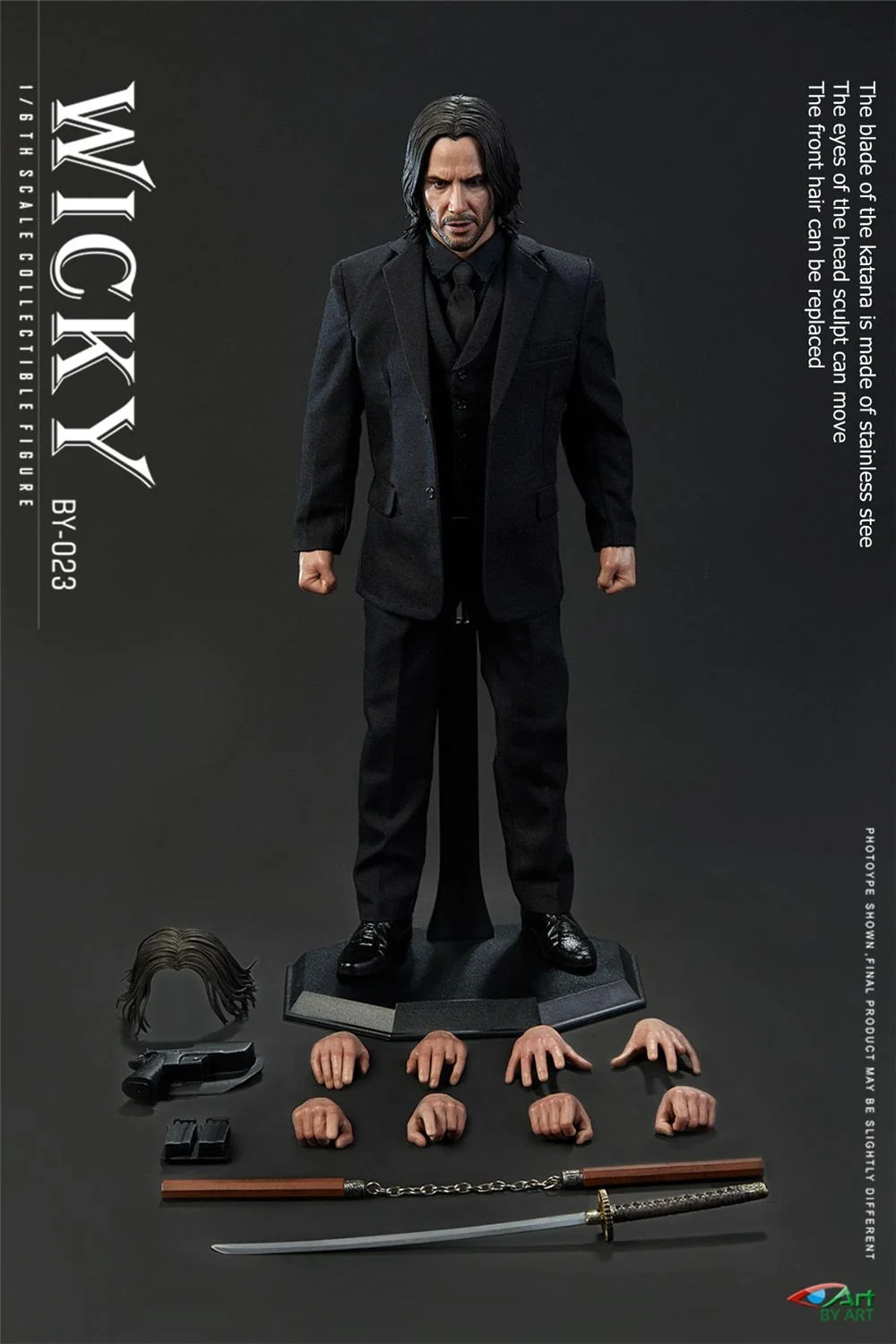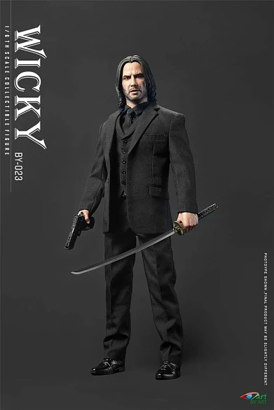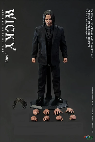 Комплектация: голова + тело + пара сменных частей волос + пять пар рук + костюм + рубашка + галстук + жилет + брюки + ремень + носки + туфли + пистолет + кобура + три обоимы магазина + подсумок для магазинов + катана + нунчаки + база