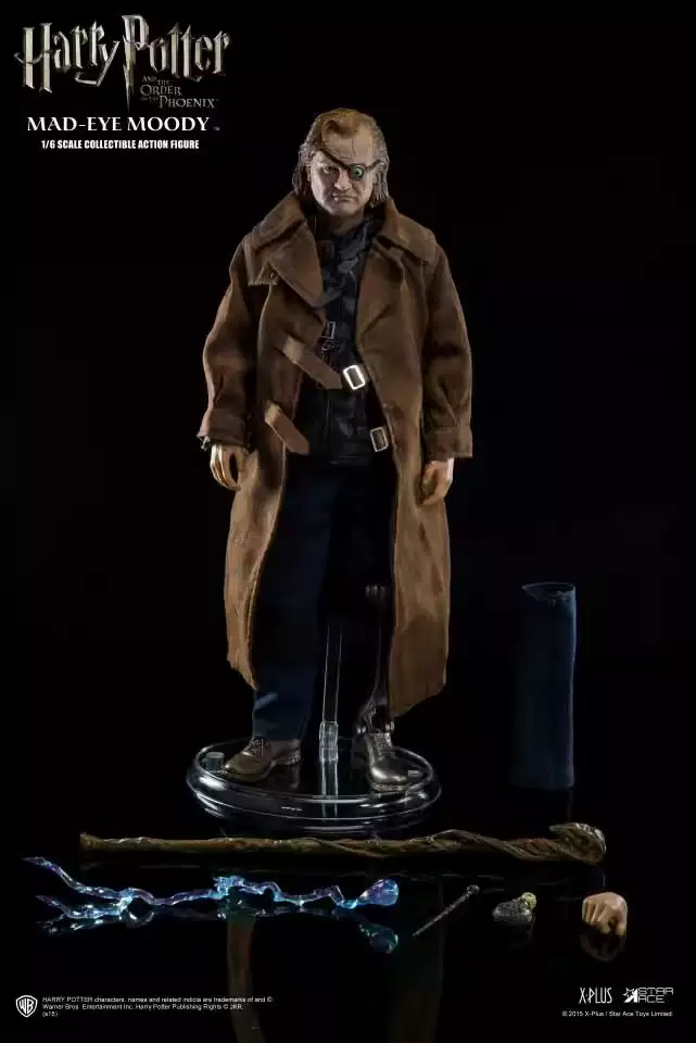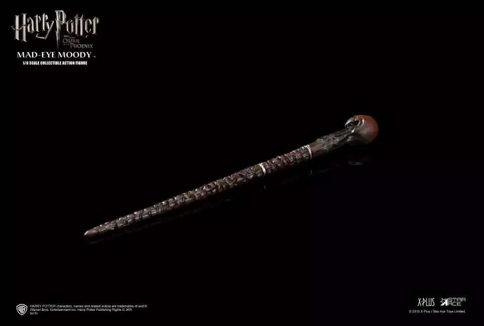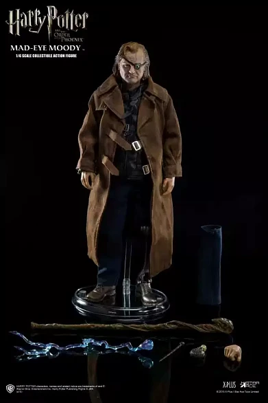 Комплектация: фигурка, подставка, сменные глаза, трость, бутылочка с зельем, волшебная палочка, свет от заклинания, сменная нога, сменная кисть руки