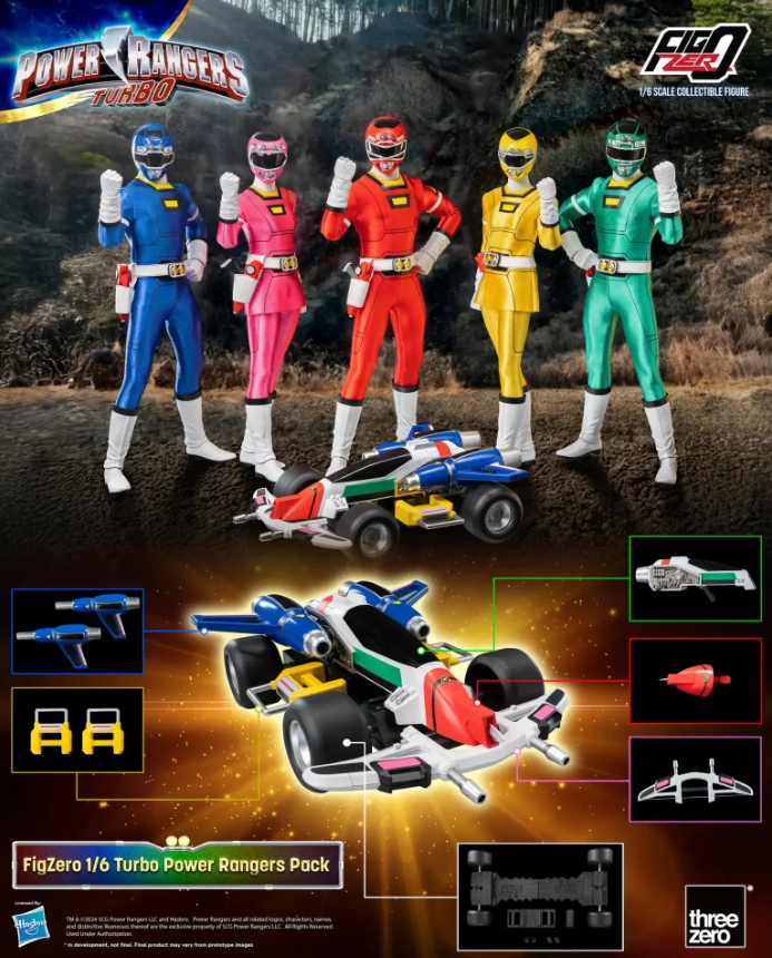 Комплектация: 5 фигурок + 15 пар сменных рук + 5 пистолетов + 5 костюмов + 6 мечей + пушка + лук + 2 турбо оружия + 2 турбо пистолета + комплект деталей для Turbo RAM
