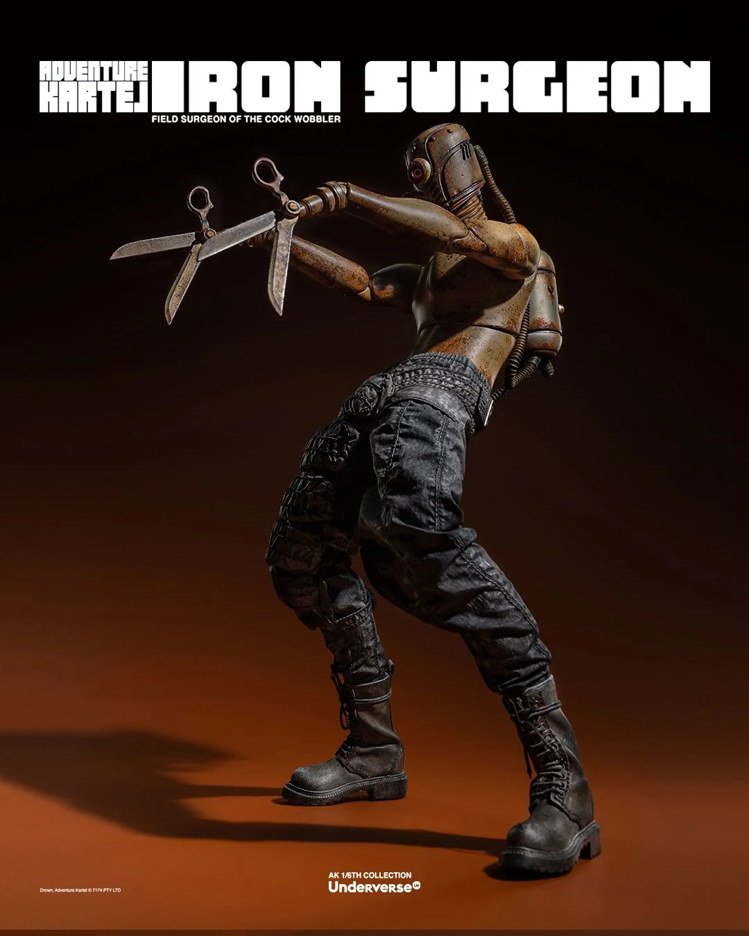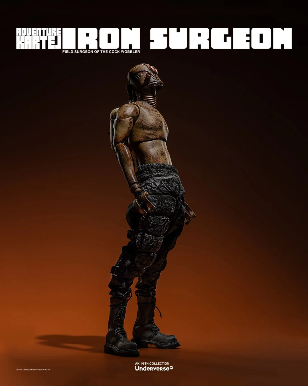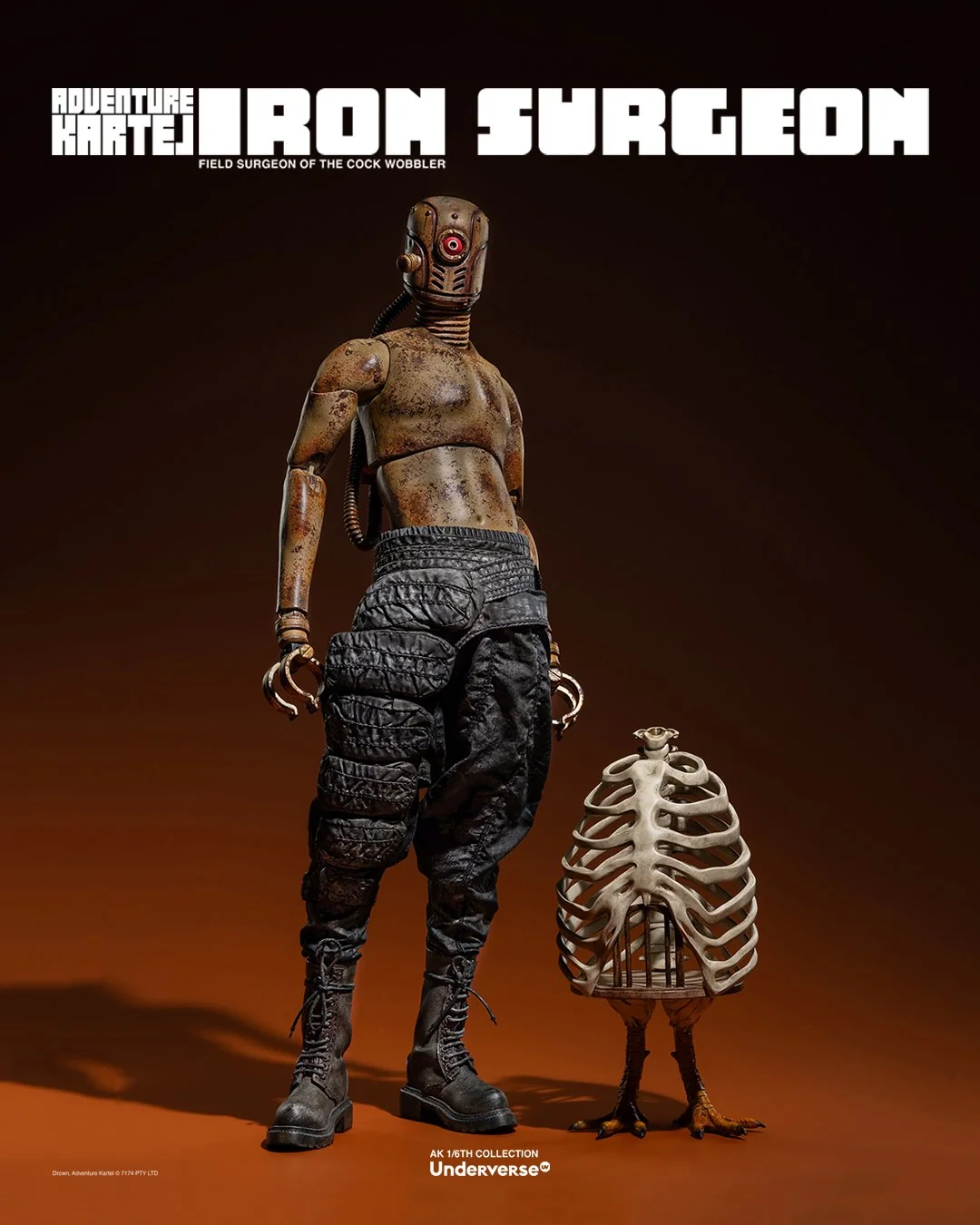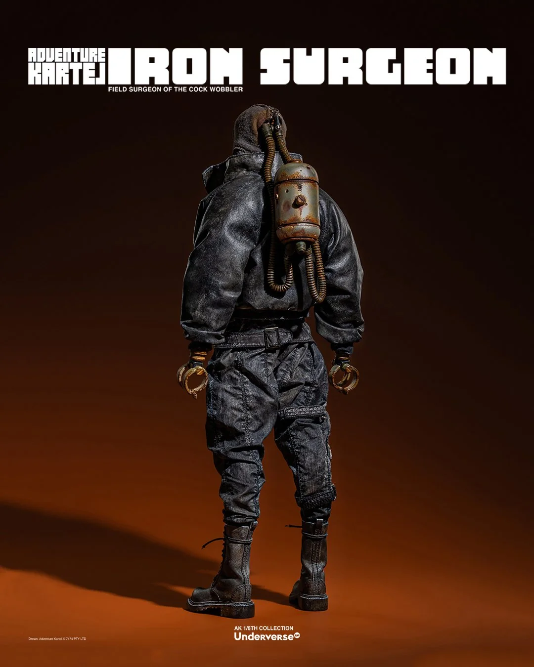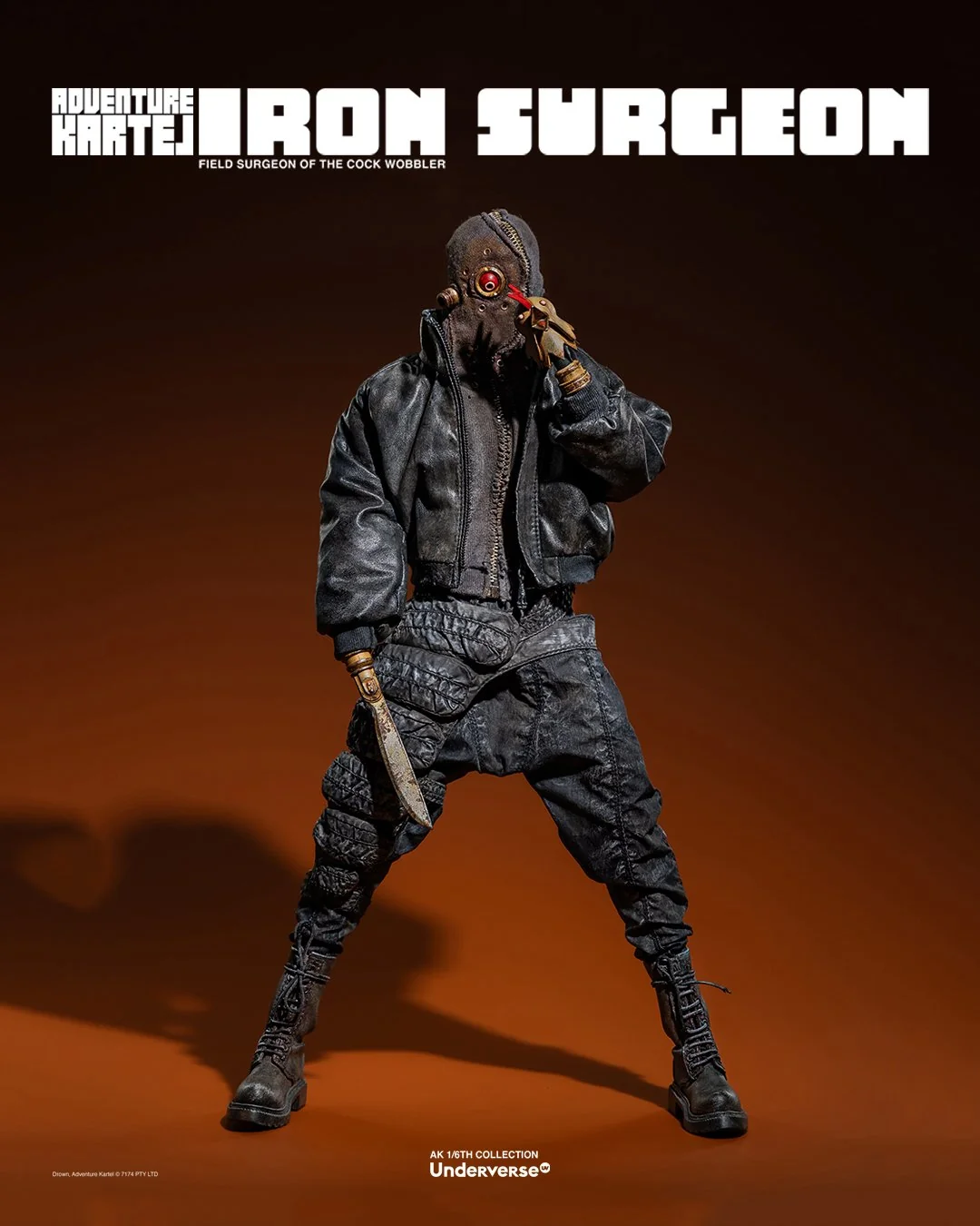 Комплектация: Фигурка The Iron Surgeon + Магнитная голова с двигающимися глазами + Маска + Кислородный баллон + Кожаное пальто + Кожаные штаны + Тканевая рубашка + Брючный ремень + Кожаные ботинки (пара)  + Набор сменных рук (8 штук)  + Подставка