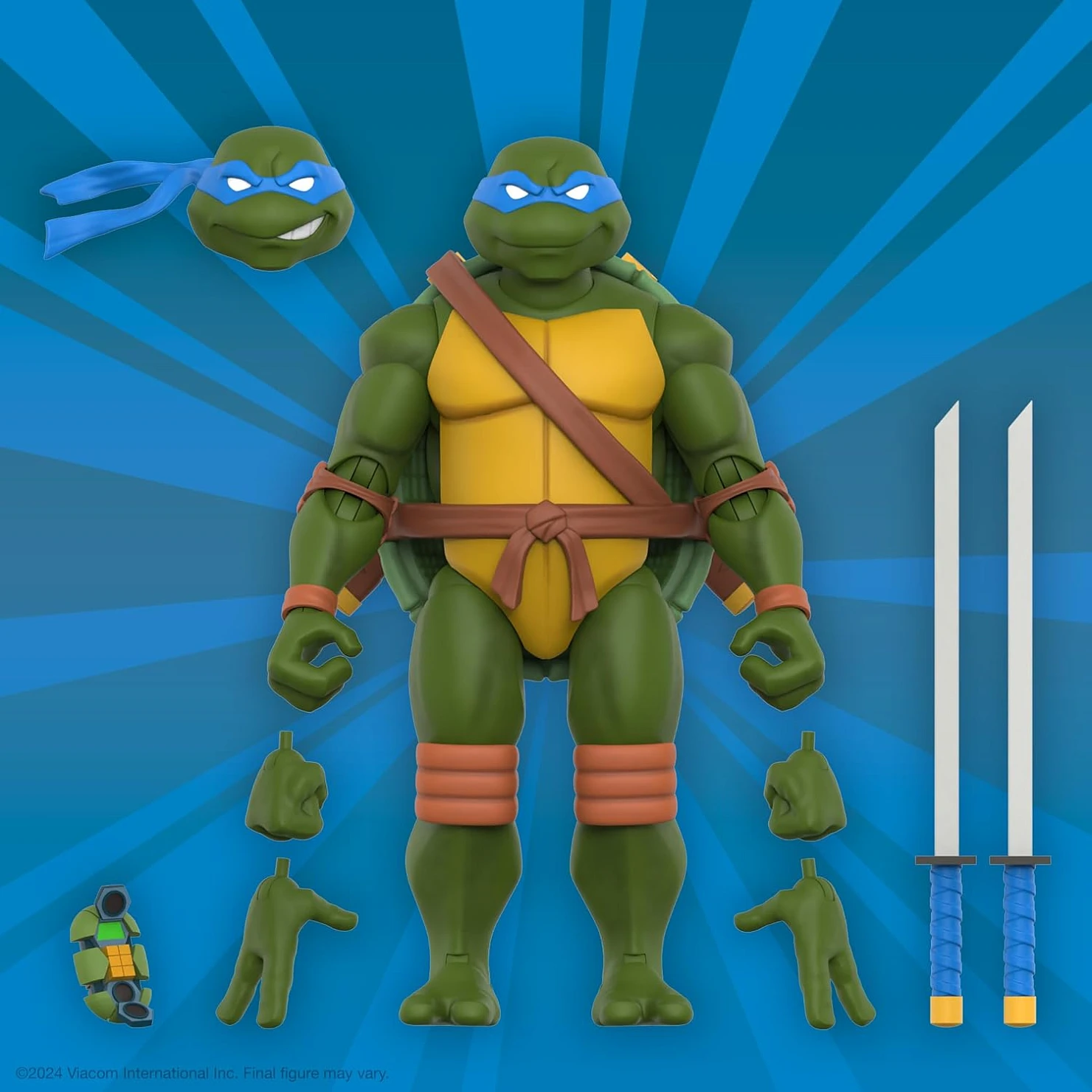 Комплектация: фигурка + сменная голова + 4 сменные кисти + черепахофон + 2 катаны