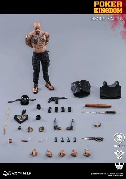 Комплектация: экшн-фигурка + голова + 10 пар рук + пальто + жилет + брюки + майка + платок + байкерские браслеты + пулемёт + пистолет DESERT EAGLE + 4 магазина для пистолета + 1 магазин + бита + 2 ножа + 2 цепочки + очки + сигарета + сигара + пепельница + 4 зубочистки + меч + кастет + шлем