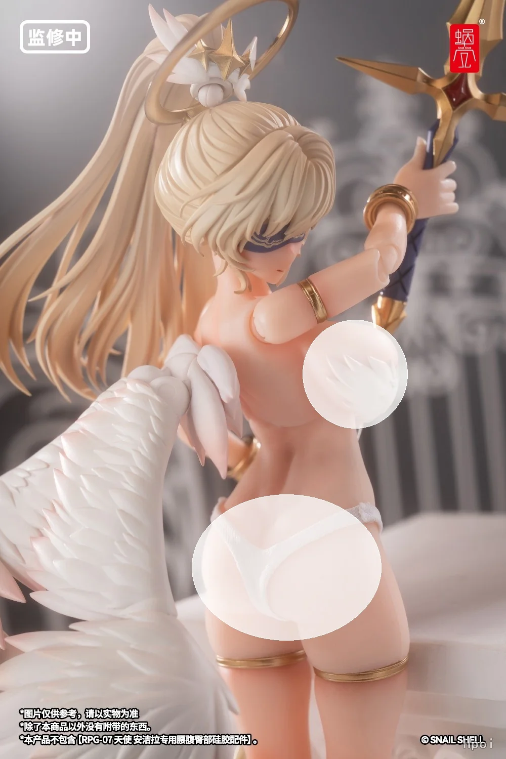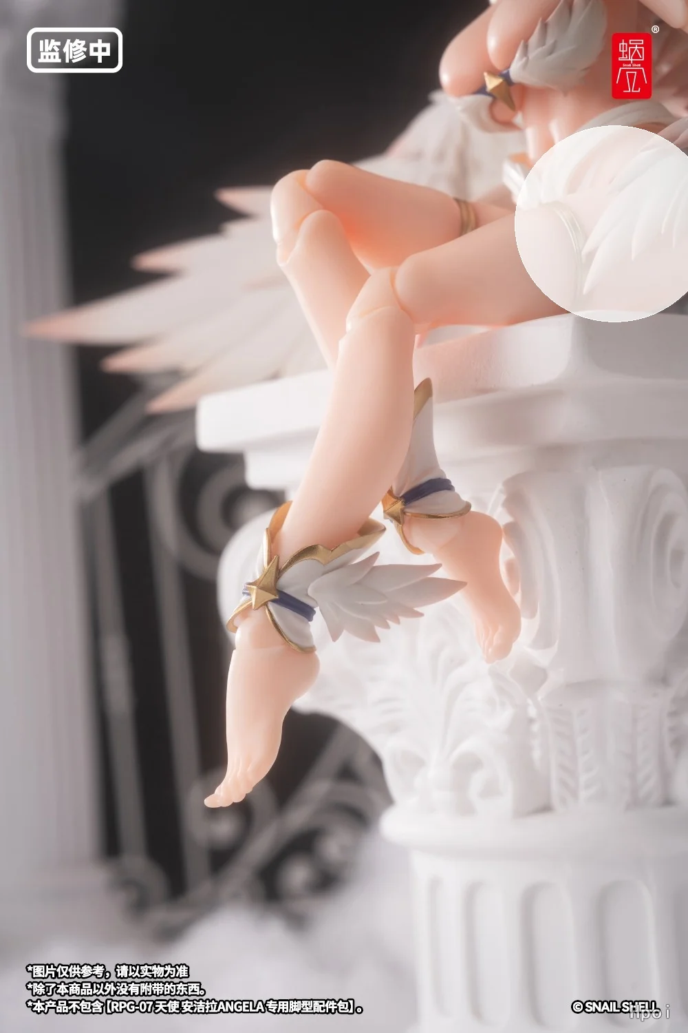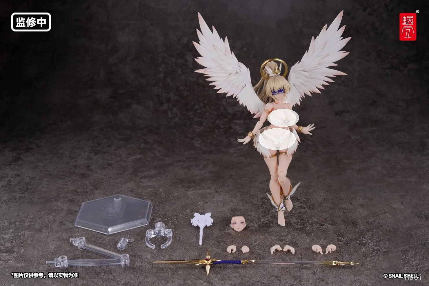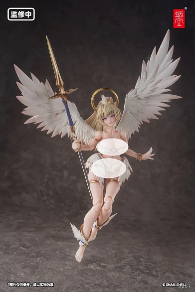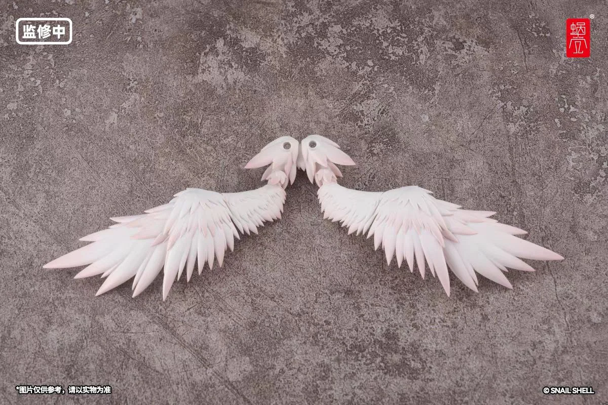 Комплектация: тело персонажа + сменное лицо с регулируемыми глазными яблоками + 3 пары сменных кистей + ангельский посох с клинком + кронштейн + подставка