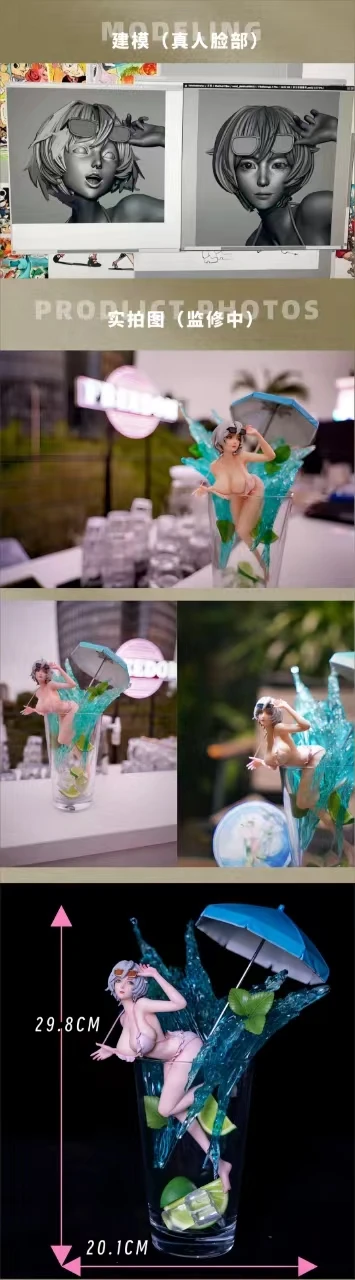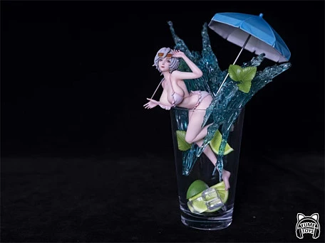 Комплектация: девушка + настоящий коктейльный бокал + постер + "брызги напитка" + "кубики льда и лайм" в бокале