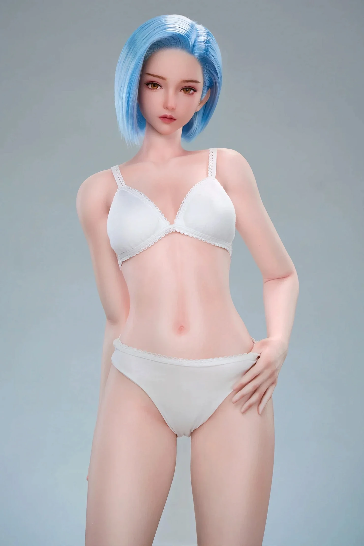Комплектация: тело из медицинского силикона + силиконовая голова с подвижными глазными яблоками и высококачественными прядями волос + комплект нижнего белья