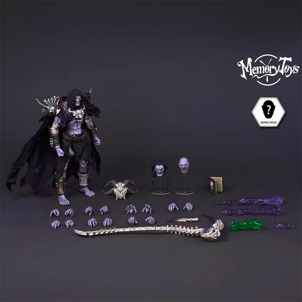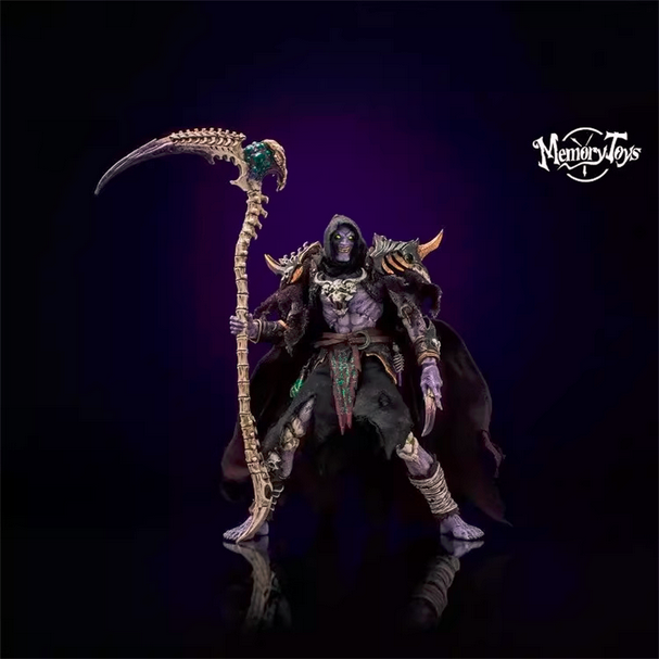 Комплектация: тело персонажа + 3 сменные головы + 4 спецэффекта + 8 сменных рук + череп-корона + коса жнеца + кинжал + книга заклинаний + плащ + нагрудник + наплечники + штаны + ремень + 2 части брони на ноги + 2 части брони на руки