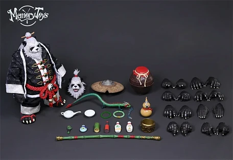 Комплектация: персонаж + сменная голова + 8 пар рук + одежда + шляпа + чайник + чашка + 2нефритовых браслета + хвост + лапка + кусок бамбука + 3 бутылки + бамбуковая трость + бочонок + браслет + тыква