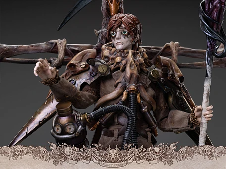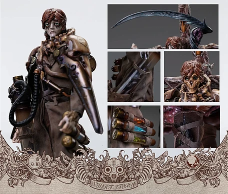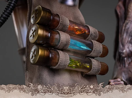 Комплектация: фигурка + 2 пары рук + пальто + рубашка + брюки + сапоги + маска + сумка + серп + колба с эффектом пламени + колба с эффектом яда + колба с эффектом заморозки + 3 маленьких бутылки + большая бутылка + летучая обезьяна в пробирке + высохшая рука + механизм на верхнюю часть тела