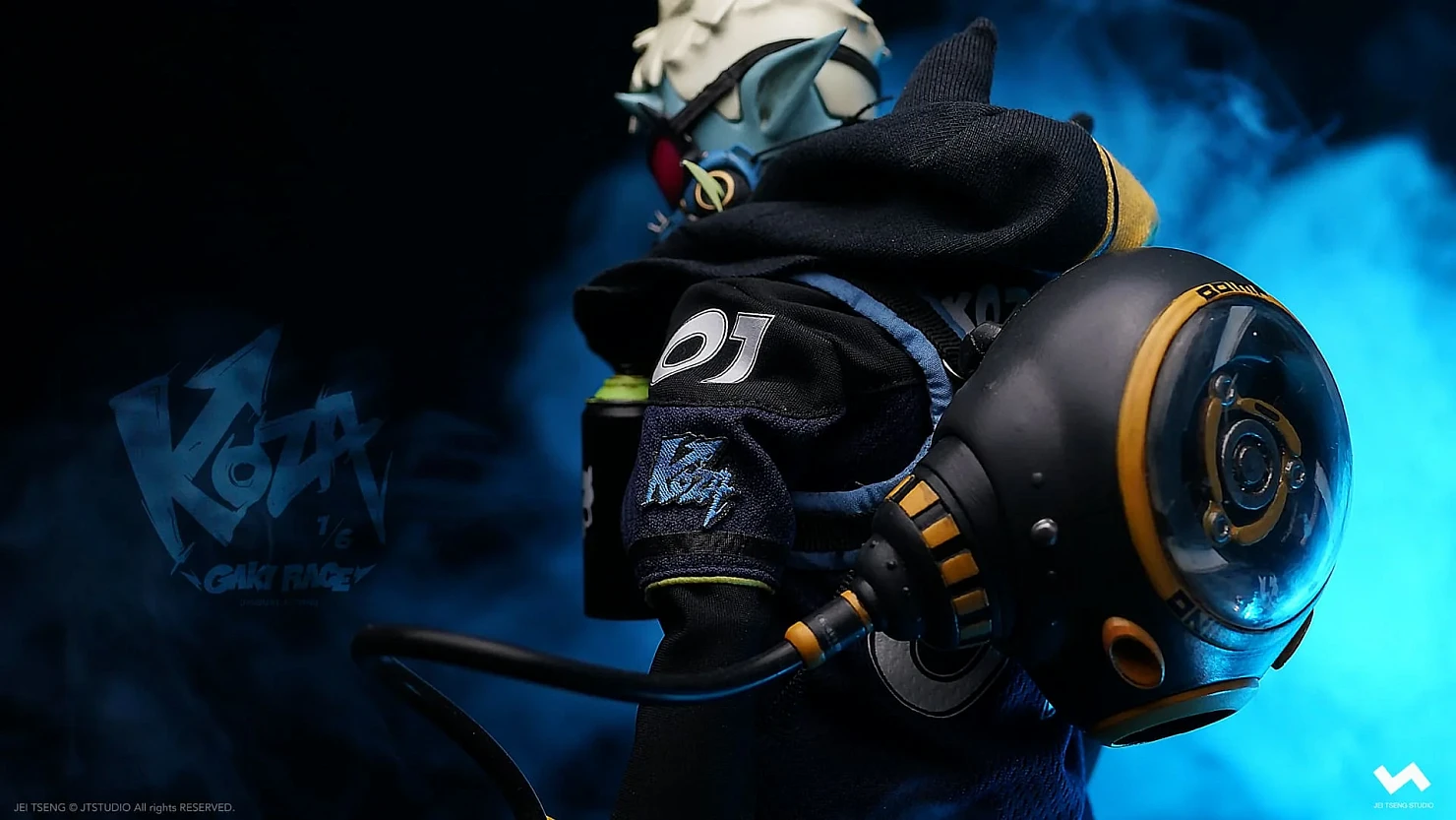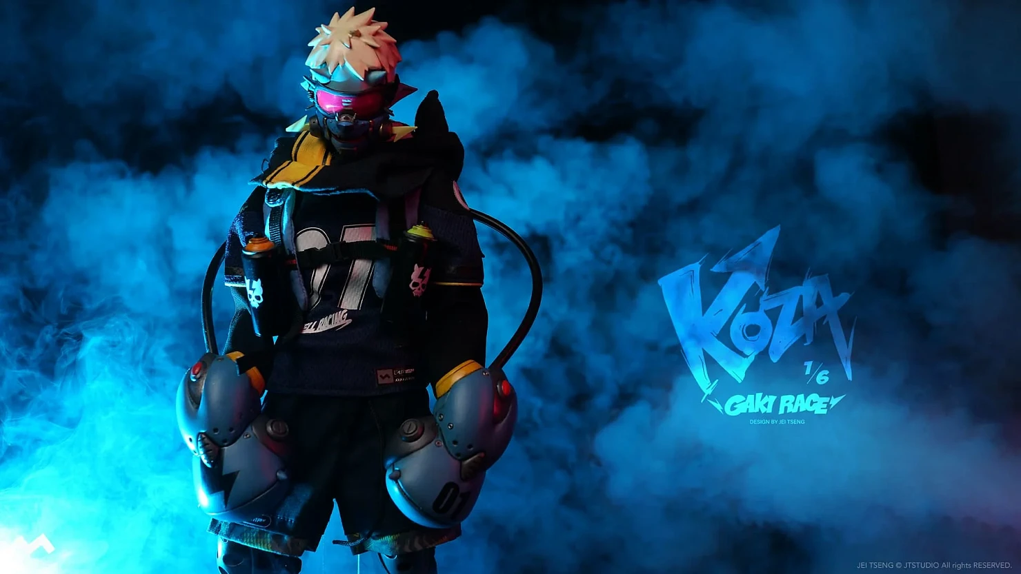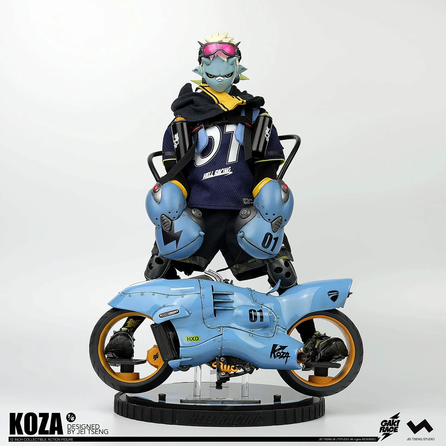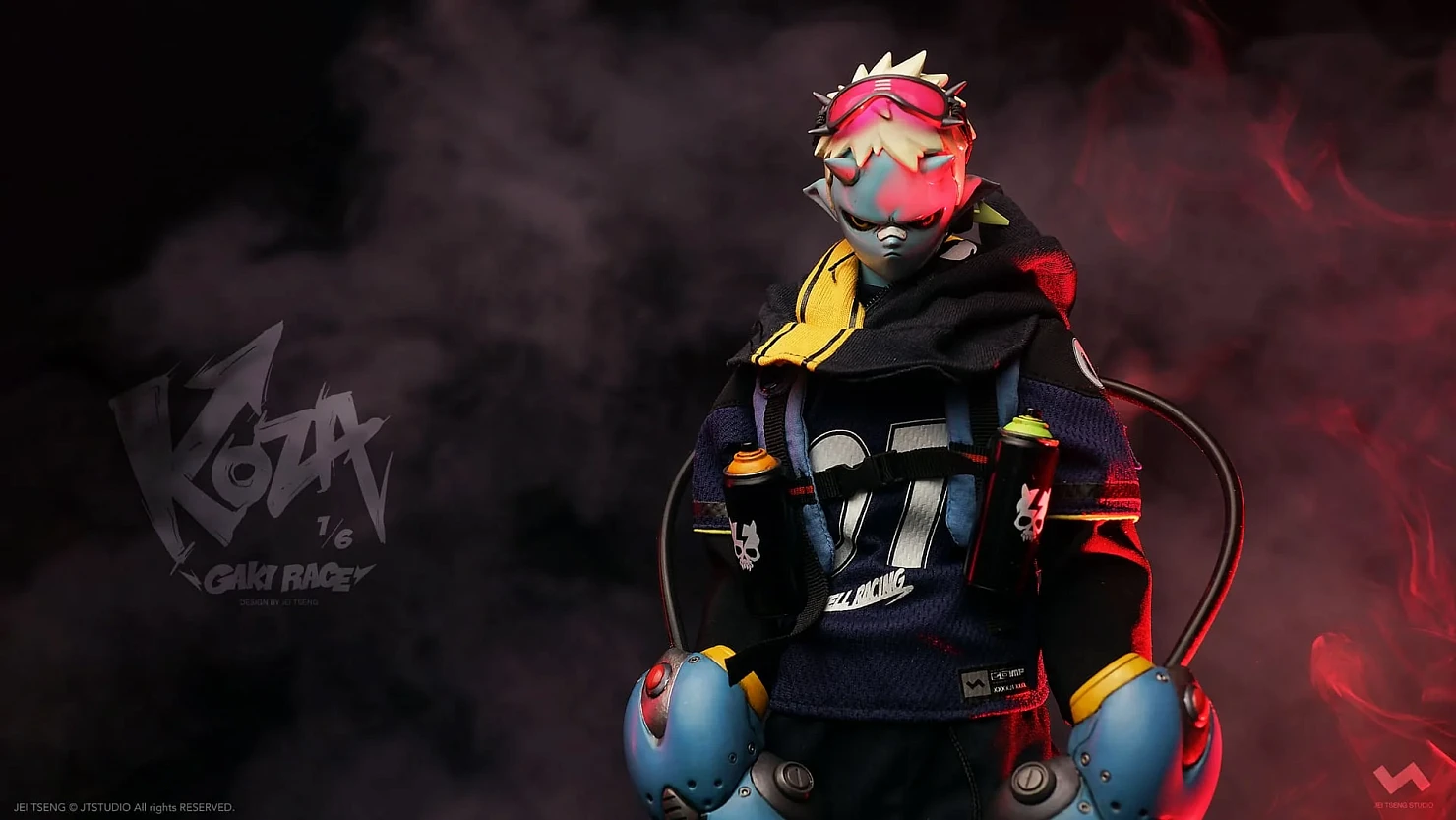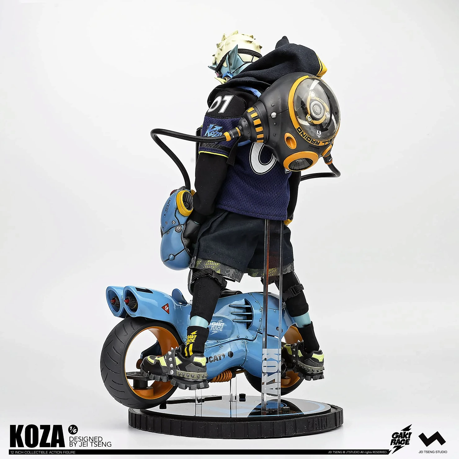 Комплектация: фигурка + защитные очки + реактивный ранец + 2 перчатки + 2 баллончика с краской +2 наколенника + мотоцикл + 4 сменных руки + платформа