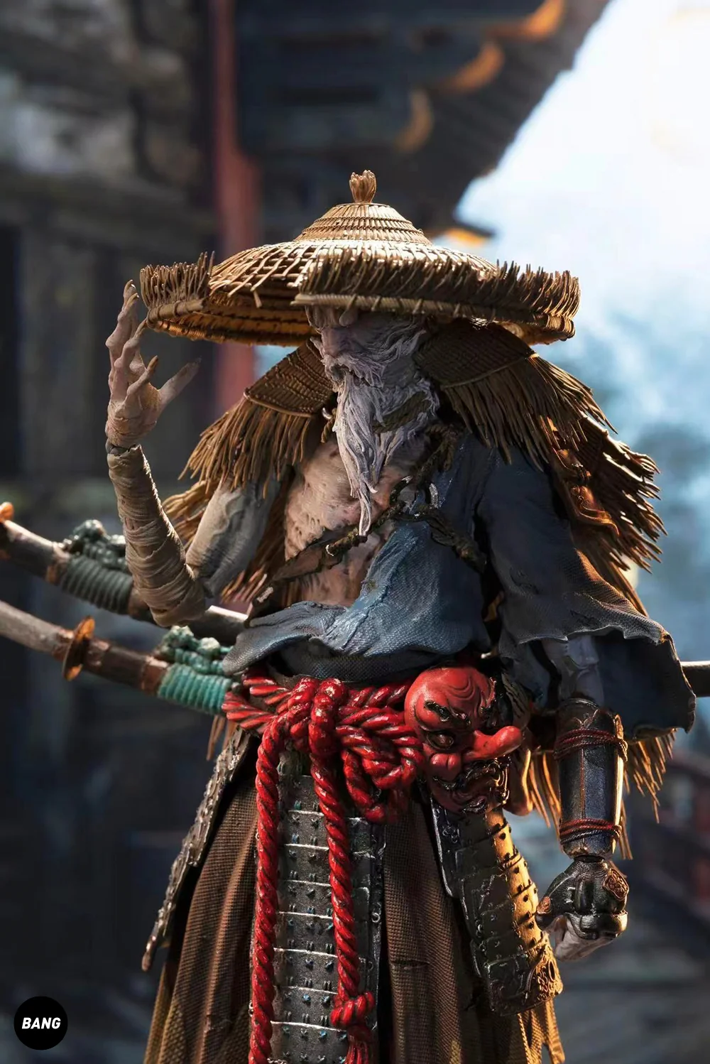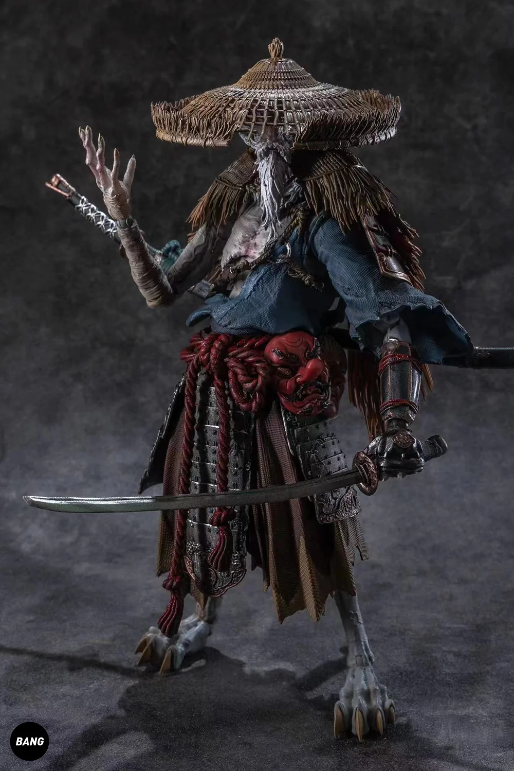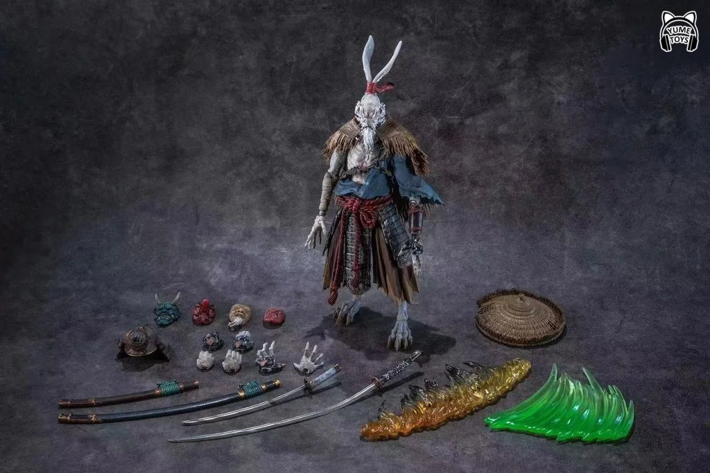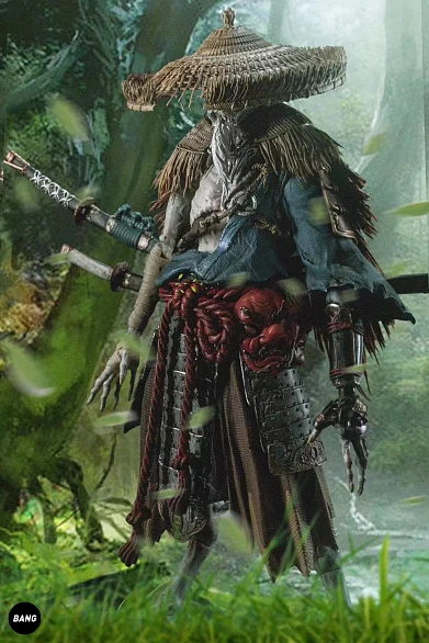 Комплектация: фигурка + 4 маски + 2 меча + 2 ножны + шлем + бамбуковая шляпа + 4 пары рук + 2 эффекта меча + соломенный плащ от дождя