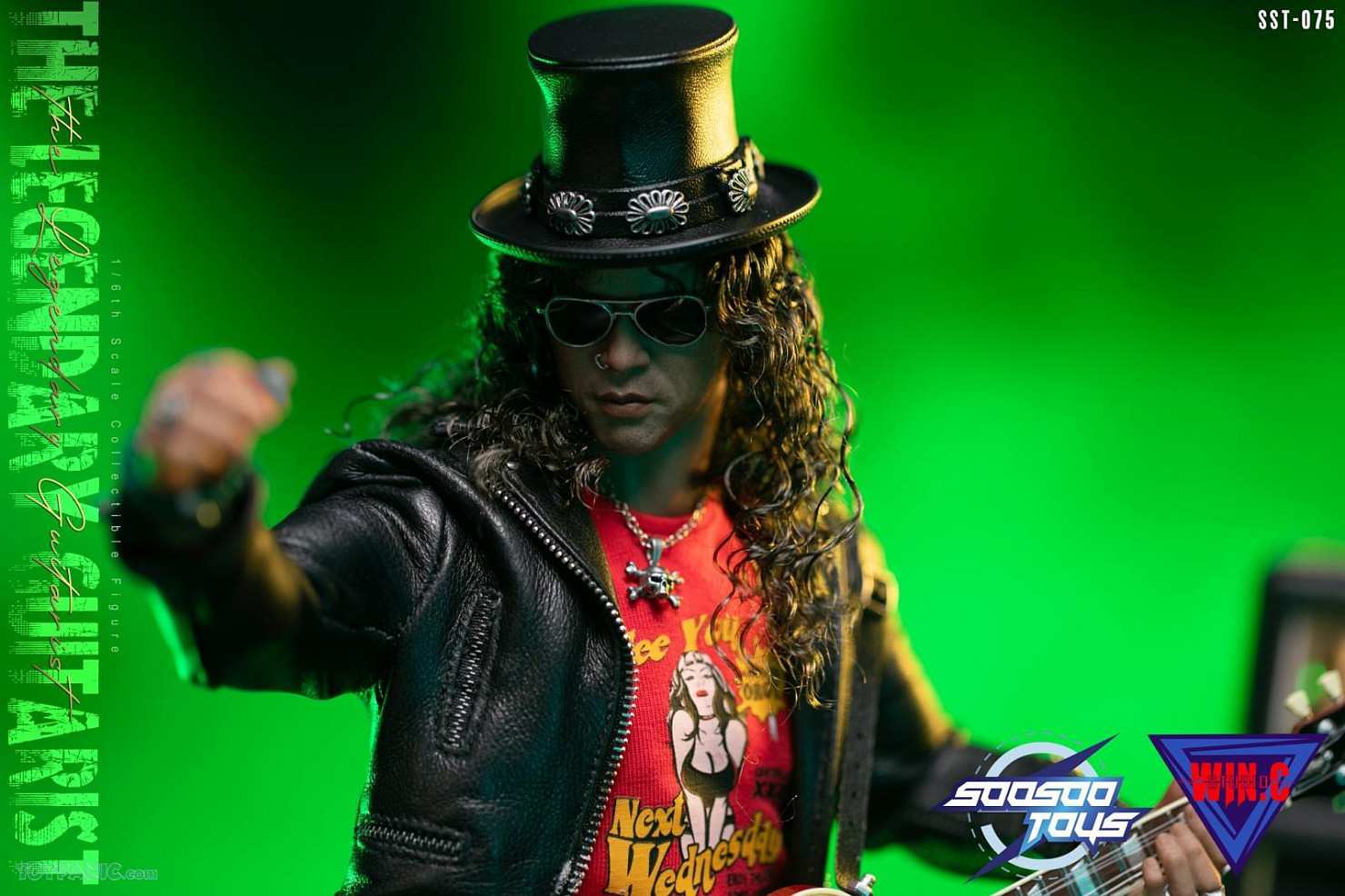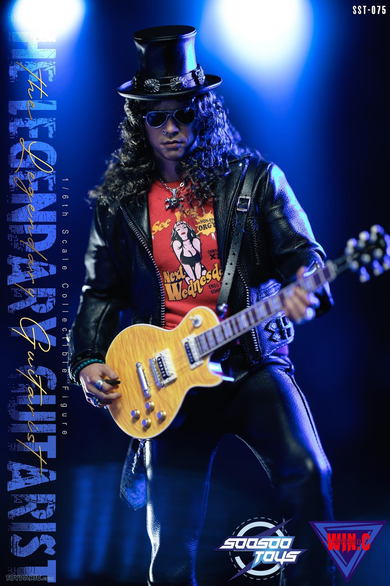 Комплектация: голова + тело + 6 сменных рук + куртка + брюки + футболка + пояс + бандана + гитара + очки + обувь + шляпа + цепь + 5 браслетов +ожерелье + 4 медиатора + база