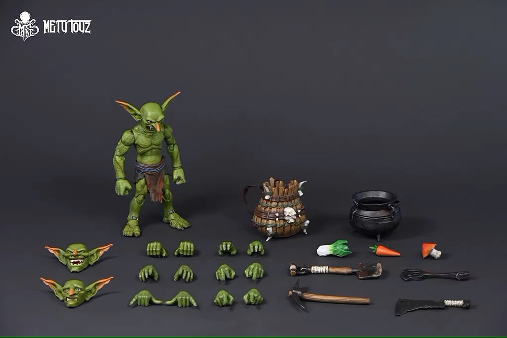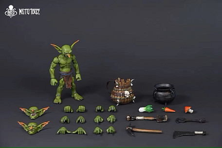 Комплектация: персонаж + 3 головы + 7 пар рук + одежда + шлем + щит + лук + 3 стрелы + копье + дубина