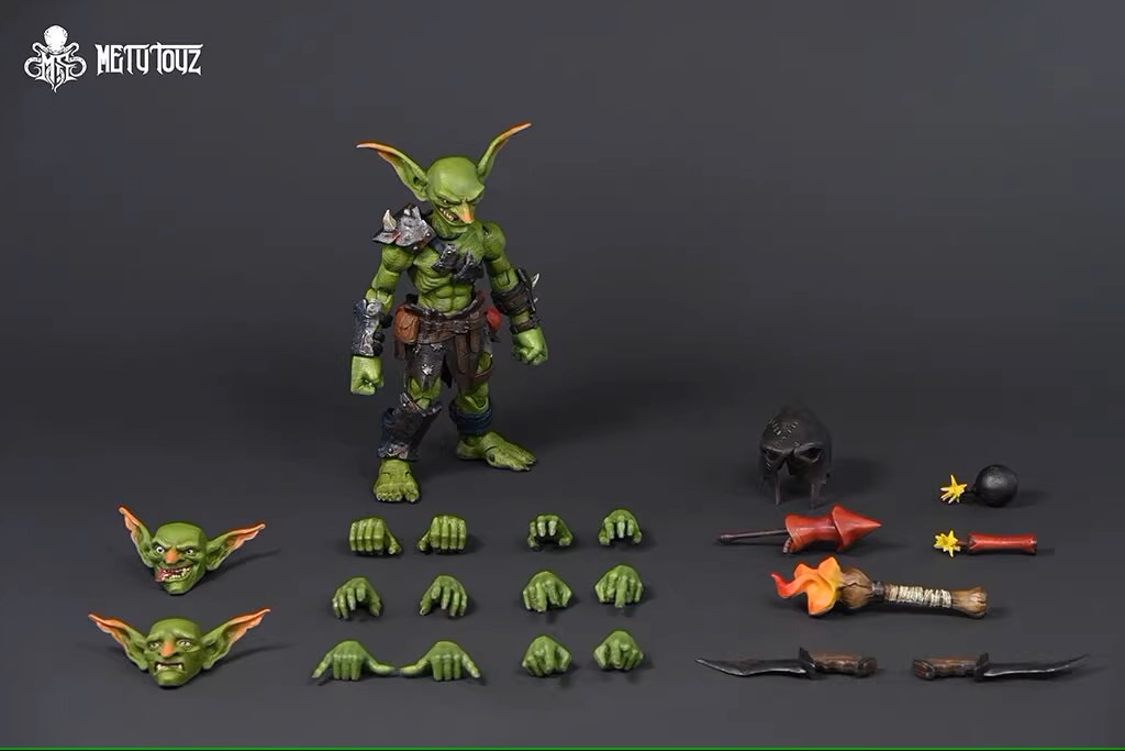 Комплектация: персонаж + 3 головы + 7 пар рук + одежда + шлем + щит + лук + 3 стрелы + копье + дубина