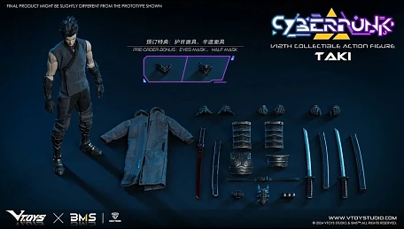 Комплектация: персонаж + 3 пары рук + пальто + пара наплечников + пара нарукавников + пара набедренных доспехов + 2 катаны + кровавая катана + маска Праджни + бонус предзаказа - маска для глаз и полумаска