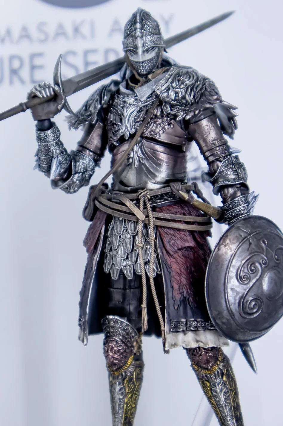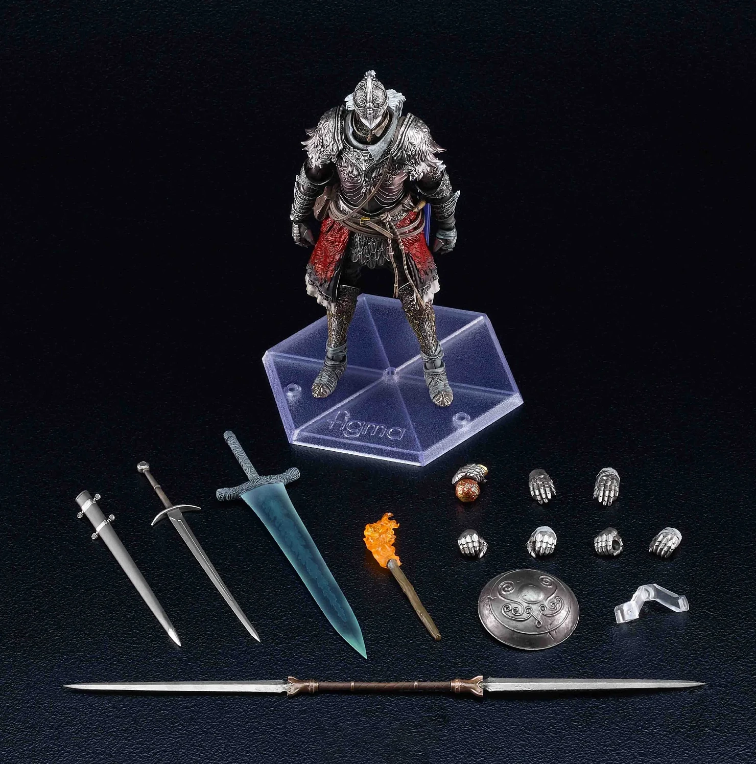 Комплектация: фигурка + 7 сменных рук + факел + дубина + бастардный меч + большой меч Темной Луны + двойные клинки + щит и крепление для него + подставка