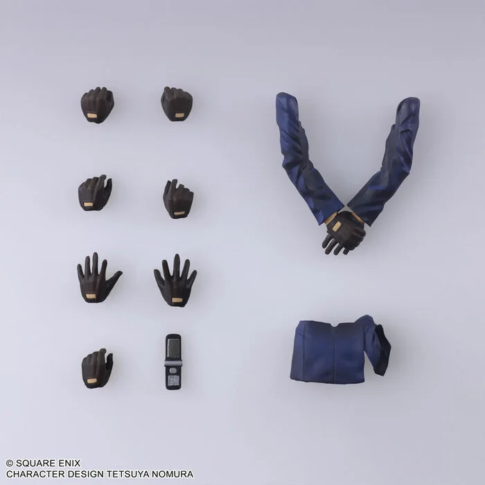 Комплектация: фигурка + подставка + 7 сменных рук + сменная часть одежды + две руки, сцепленные вместе + телефон
