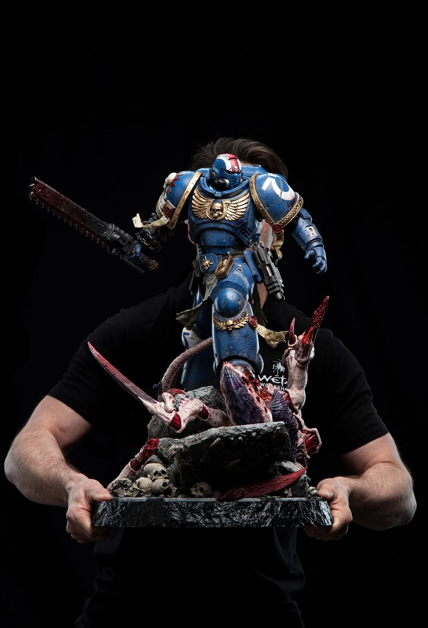Комплектация: статуя + цепной меч + светодиодный съемный шлем (требуется батарея 23А, в комплект не входит) + подставка для шлема + платформа