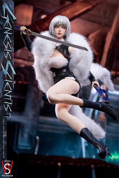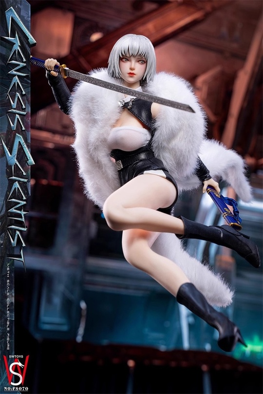Комплектация: фигурка + голова с подвижными глазами + накидка с мехом + жилет + топ + ремень + штаны + ботинки + нарукавники + меч с ножнами + 3 пары сменных рук